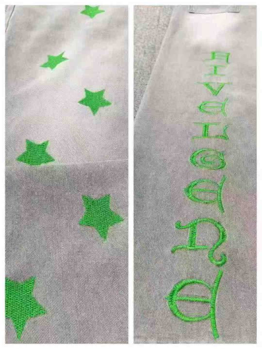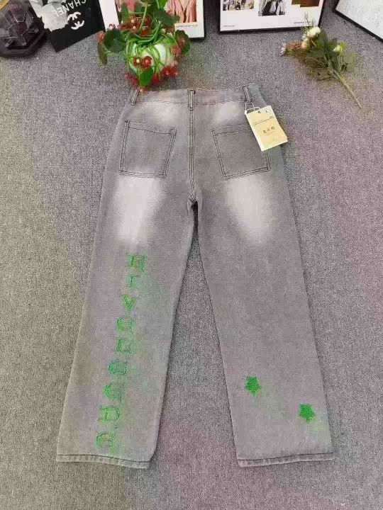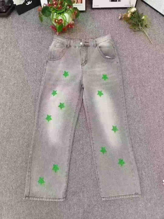 设计感水洗做旧字母刺绣直筒牛仔裤 数量330件左右 码数XS--XL 整款统一吊牌 刺绣logo 独立包装带吊牌 货品整洁质佳