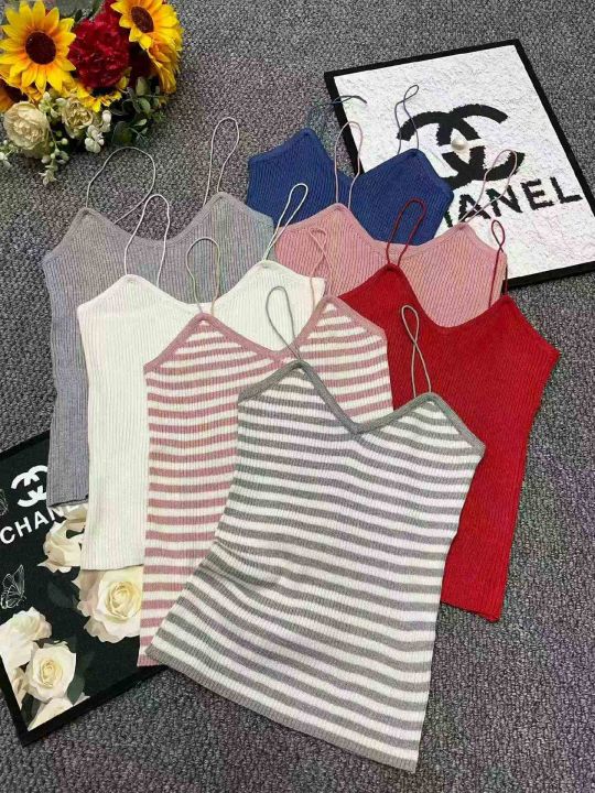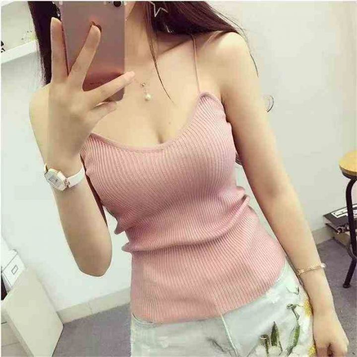 夏季新款设计感坑条冰丝弹力修身显瘦针织吊带背心,独立包装,均码面料柔软...