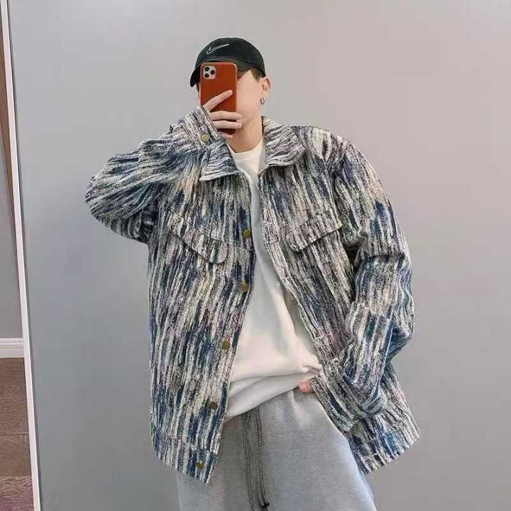 vintage美式扎染牛仔外套男高街秋季新款潮牌ins嘻哈痞帅宽松夹克,L-3XL,独立包装,货品干净,120件,16.8清,不分货