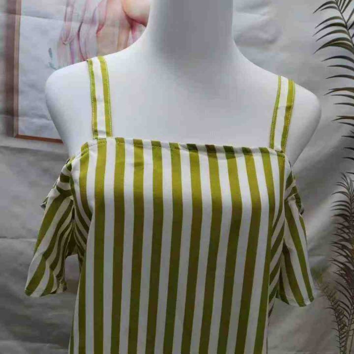 2.8元秒杀[胜利][胜利] 条纹露肩爆款可爱女士无袖吊带...