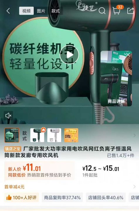 400台家用大功率负离子电吹风机,全清每台6.5元秒!