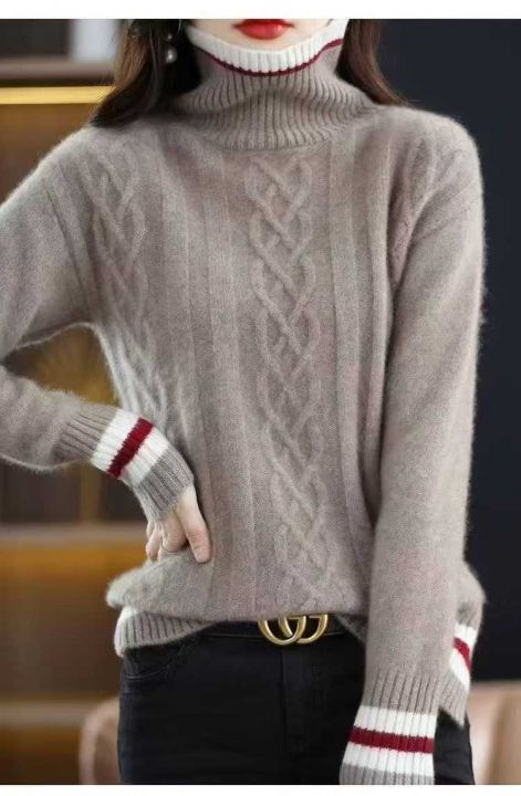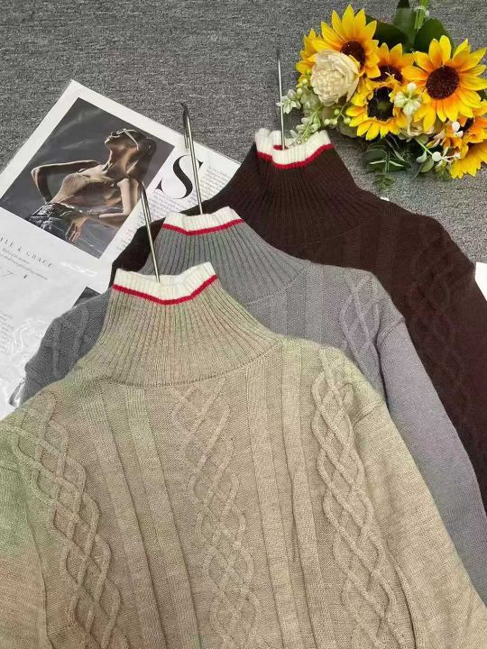 秋冬新款宽松慵懒风麻花加厚款包芯纱高领套头毛衣,独...