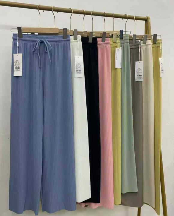 641松紧抽绳冰丝阔腿裤。面料柔软舒适,垂感顺滑。两种面料,裤头有包边和不包边两种,裤长有两种长度,码数S-2XL,独立包装带吊牌,全清7.8分货加1。 货号:1303