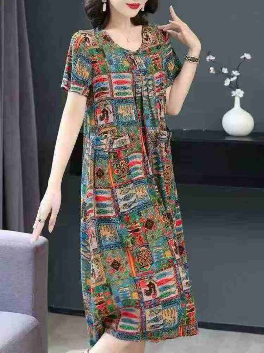 妈妈夏装连衣裙女夏季宽松裙子加肥加大码装,图片款图片色,图6图7为主,2...