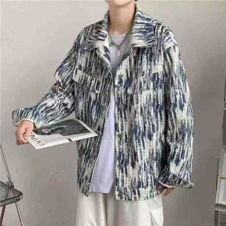 vintage美式扎染牛仔外套男高街秋季新款潮牌ins嘻哈痞帅宽松夹克,L-3XL,独立包装,货品干净,120件,16.8清,不分货