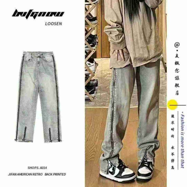 美式vibe裤子ins高街潮黄泥牛仔裤男女侧边拉链开叉宽松直筒长裤,码数L-3XL,数量330件,独立包装,货品干净,图一色为主,。 货号:1303