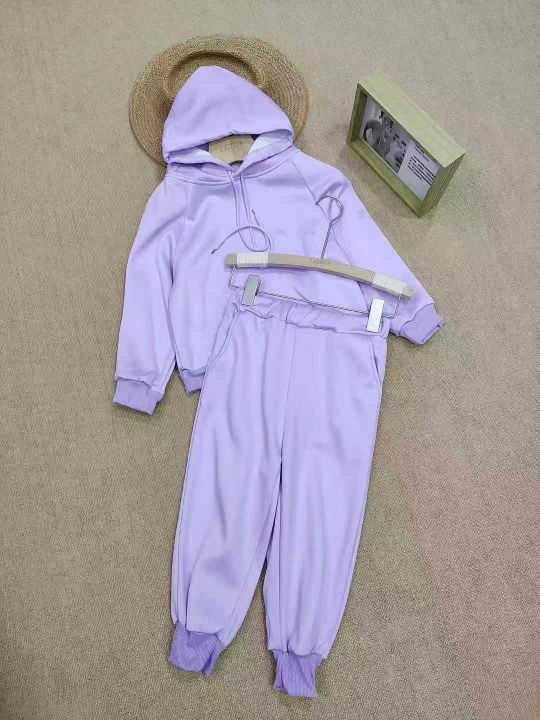 [月亮]:潮童香芋紫加绒连帽休闲套装