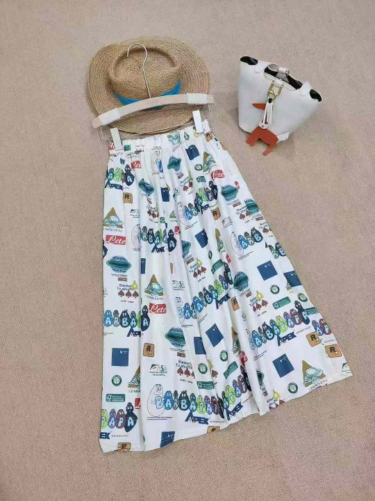 [月亮]:甜美森系夏季休闲松紧腰半身裙