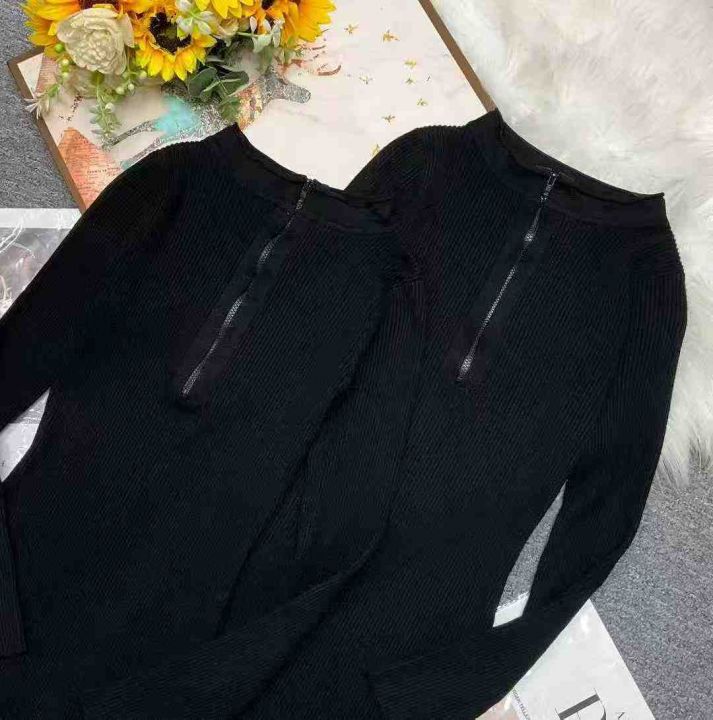 秋冬新款法式半拉链弹力修身显瘦气质御姐风黑色针织毛衣连衣裙,独立包装,均码面料柔软舒适弹力大,163件,全清7.9元超低价秒杀!