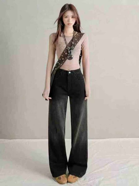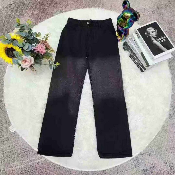 2025新款女士秋季高腰显瘦渐变黑灰色阔腿直筒牛仔裤36...