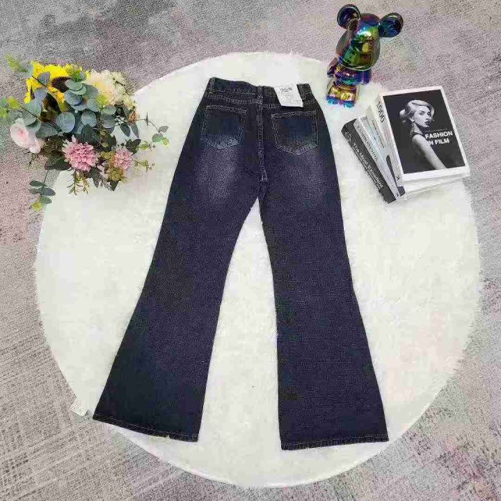 2025年秋季新款女士显瘦复古深海蓝高腰显瘦设计感喇叭牛仔裤1080件,码数XS-2XL,独立包装带腰牌,质量非常好