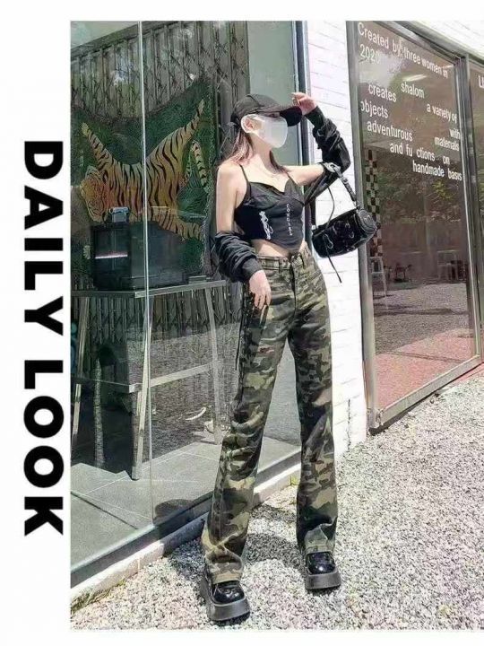 秋冬新款高品质洗水棉网红复古迷彩工装牛仔裤,独立包...