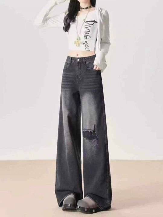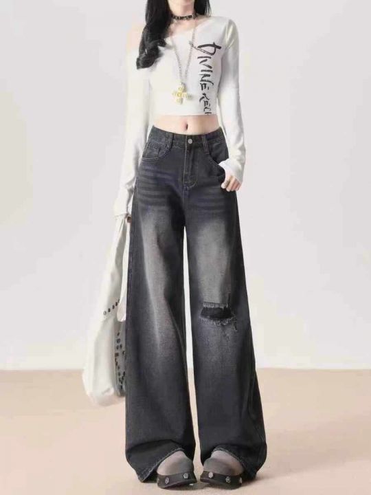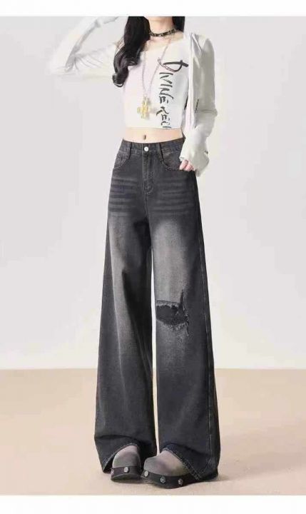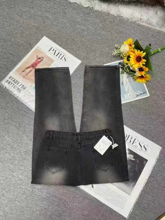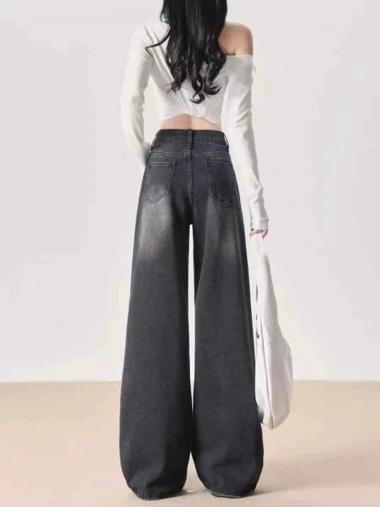 秋季新品黑色甜酷复古高腰阔腿牛仔裤,独立包装带吊牌...