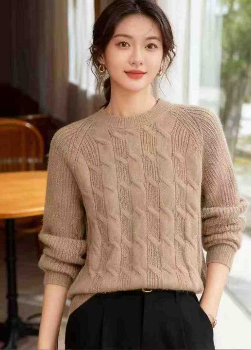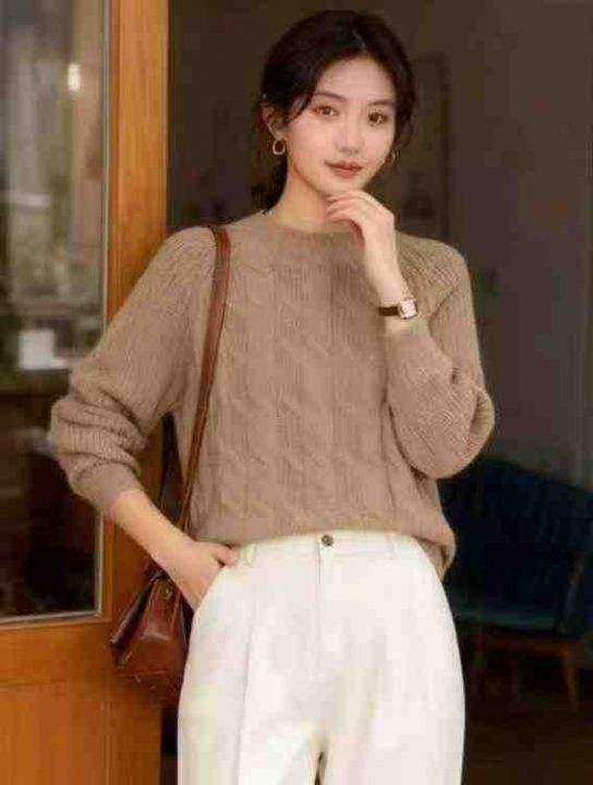 秋冬新款宽松韩版时尚麻花圆领套头毛衣,独立包装,均...