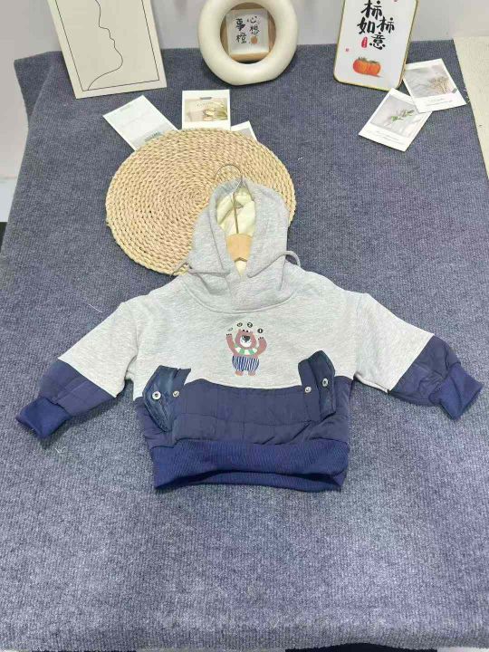 冬季新款 儿童绗棉拼接一体绒连帽卫衣帽衫男童女童韩版上衣潮,数量285件,...