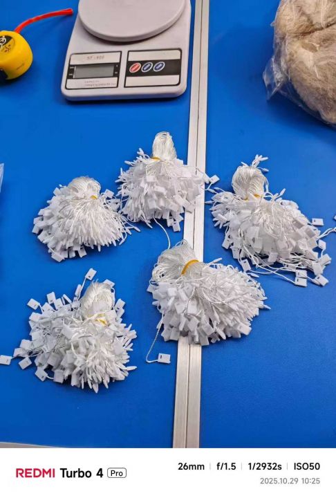 白色服装吊牌绳扣500000条,膜袋包装,每袋5扎,每...