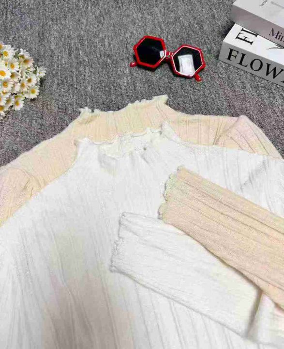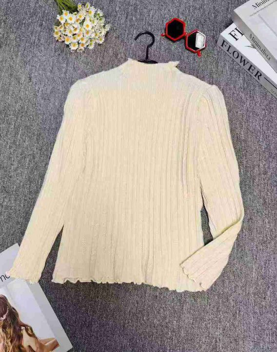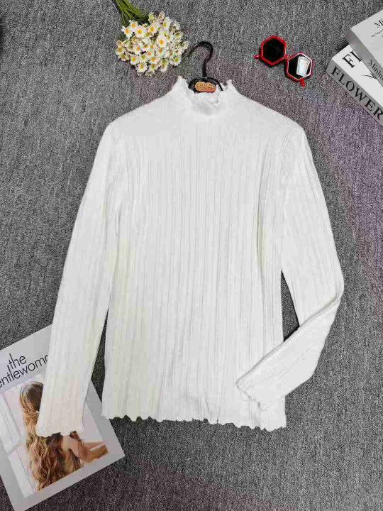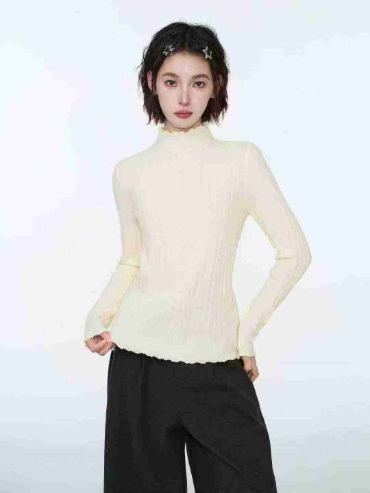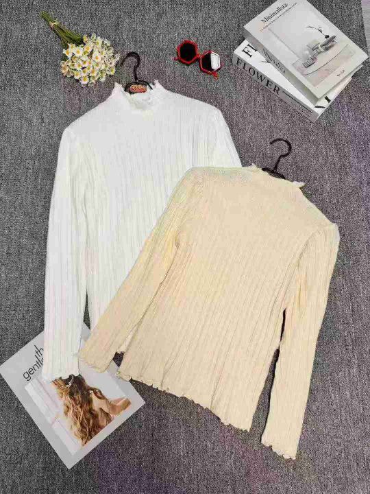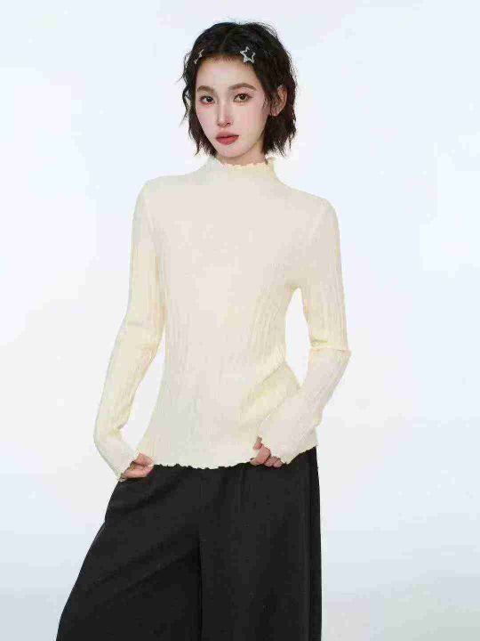 修身百搭半高领木耳边长袖打底衫针织衫,整款两色,手...