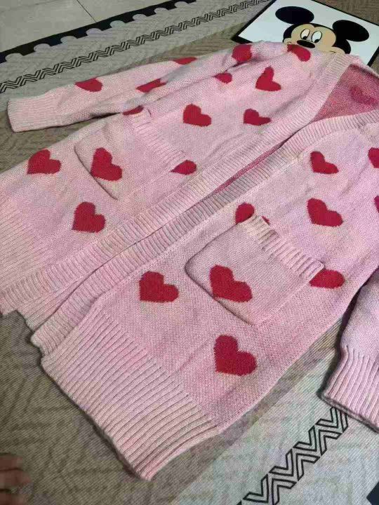 85件左右秋冬新款爱心针织开衫口袋V领中长款毛衣开衫...