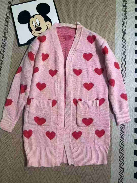 85件左右秋冬新款爱心针织开衫口袋V领中长款毛衣开衫外套,均码!独立包装!全清6.9 不分货