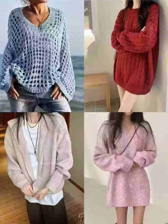 韩系靓妹精品慵懒风宽松百搭显瘦套头开衫毛衣,万佳档口新货!面料软糯亲肤高弹力!实体店几百的品质,24个图片小整款!数量2000件左右,货品干净!独立包装基本无瑕疵!均码!可穿80-140斤,超低秒杀价5.9 不分货!