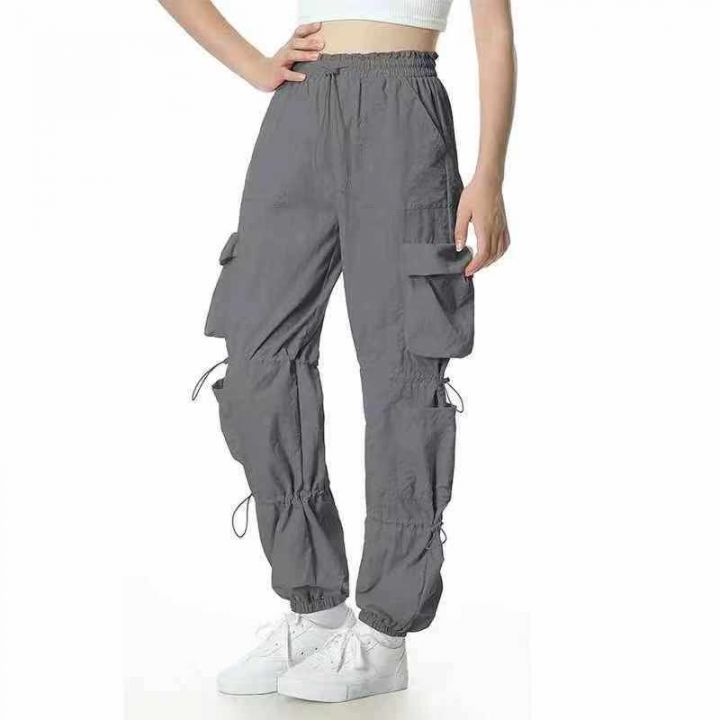 秋季新品美式复古抽绳弹力显瘦多工装多口袋休闲裤,独...