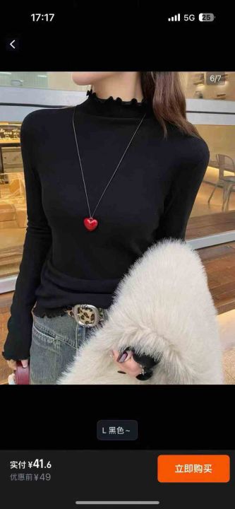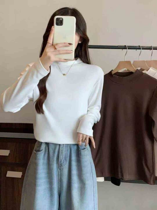 螺纹德绒半高领打底衫女长袖修身显瘦气质百搭上衣秋冬...