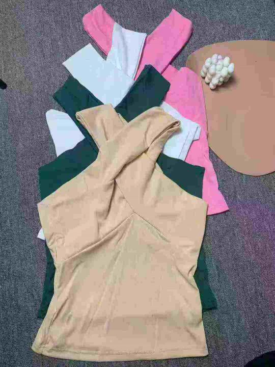 5.8清308件法式性感交叉挂脖背心女春夏一字肩露锁骨修身短款多穿小上衣 码数S-2XL 独立包装