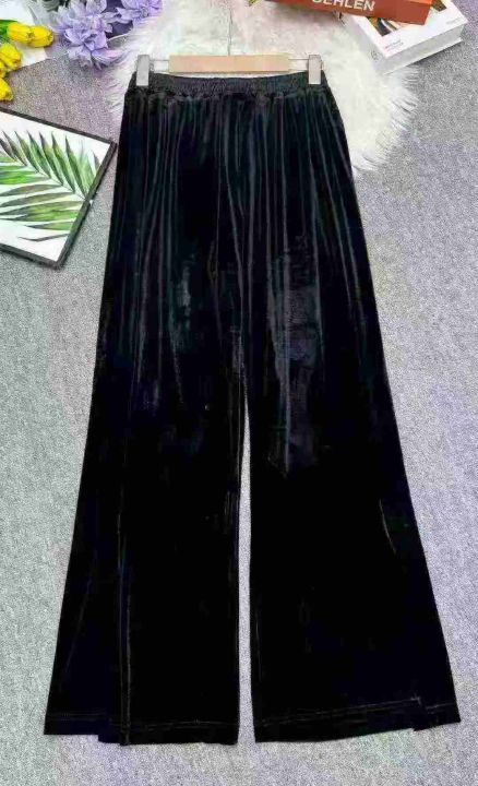 金丝绒秋冬新款垂坠感高腰显瘦百搭宽松高腰休闲开叉阔腿裤,独立包装,弹力大,码数S-4XL(1-7),数量331条,(货号0914#48)