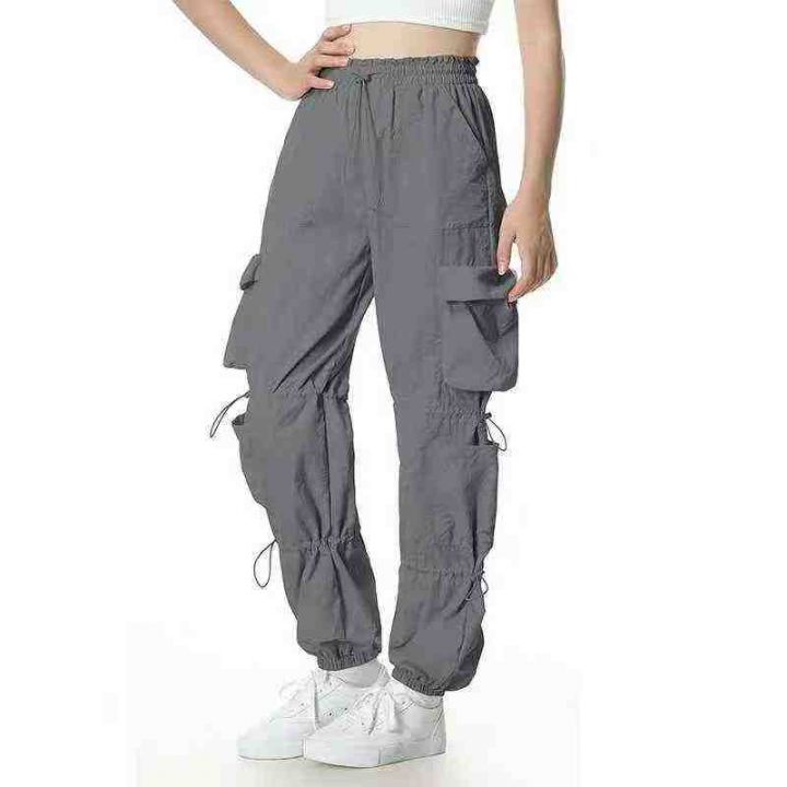 秋季新品美式复古抽绳弹力显瘦多工装多口袋休闲裤,独...