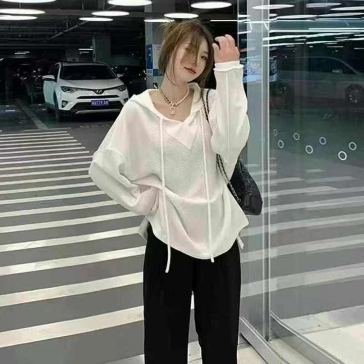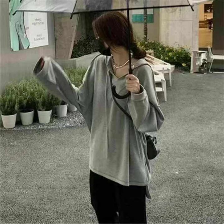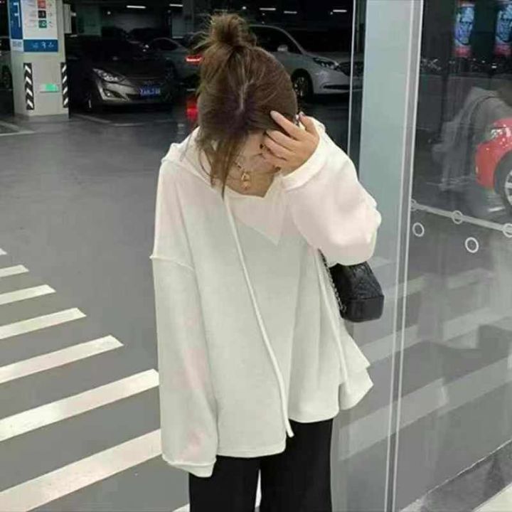 大码慵懒风连帽卫衣女早秋新款叠穿上衣外套ins小众显...