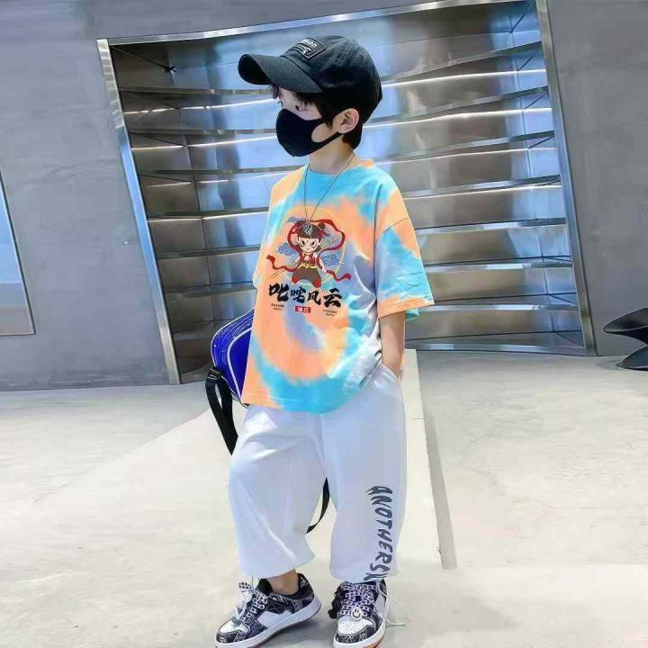 哪吒中大童纯棉短袖卡通动漫T恤宽松洋气透气扎染,数量443件,码数130-170,独立包装后领包边,全清4.8元。 货号:1303