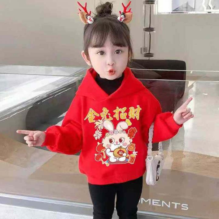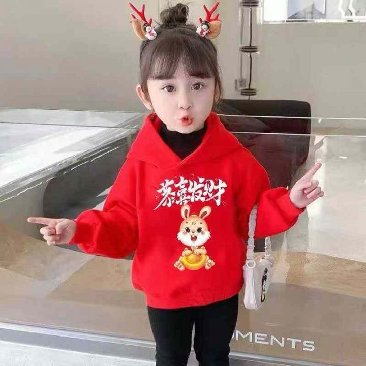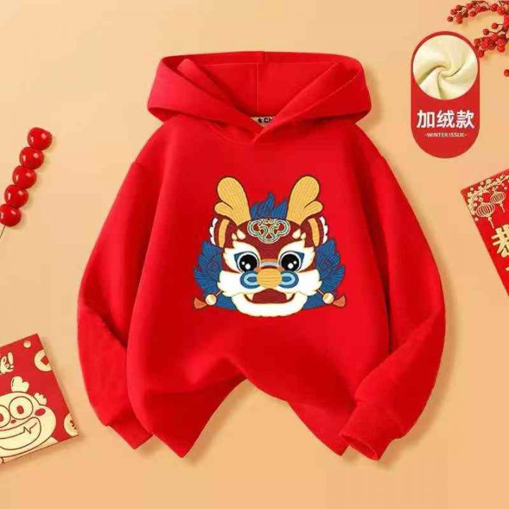 儿童冬季红色连帽卫衣女童宝宝加厚加绒上衣,数量198...