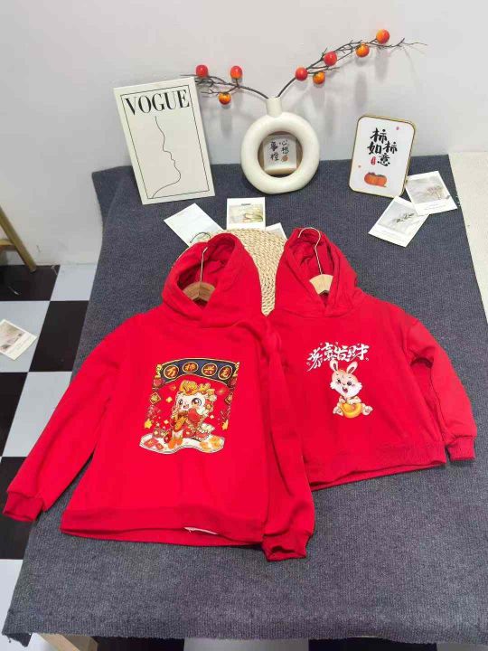 儿童冬季红色连帽卫衣女童宝宝加厚加绒上衣,数量198件,码数100-150,独立包装,全清5.5元。 货号:1303