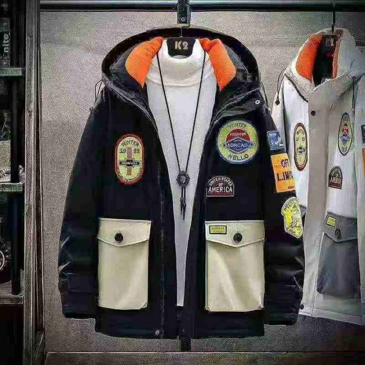 780件潮牌加厚连帽男女同款工装羽绒服,尺码M-XL, M码...