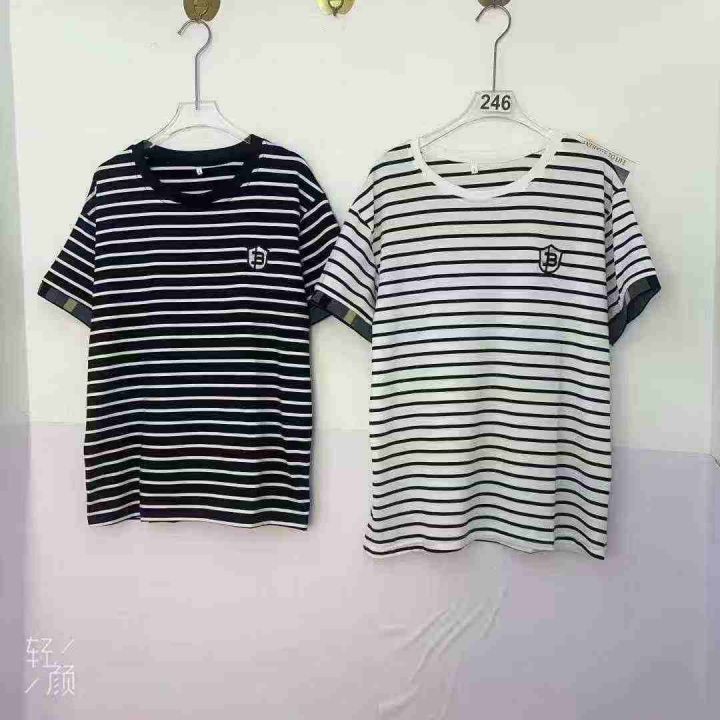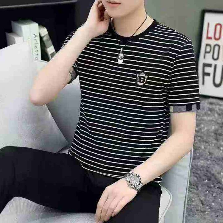 夏季修身圆领透气条纹刺绣短袖男装T恤,码数2.4.6M.L....
