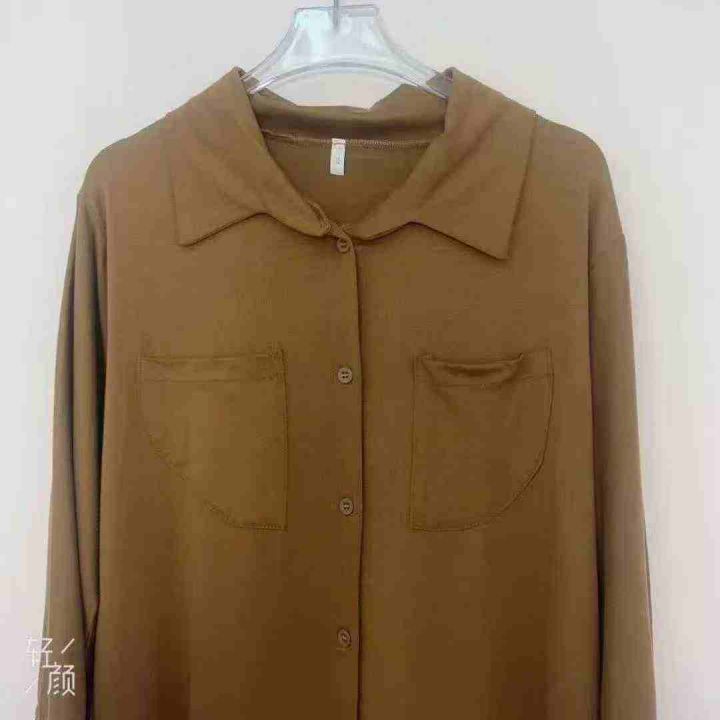 日系简约舒适加厚婴儿绒质感通勤减龄元宝领子母扣保暖长袖衬衫,面布纯棉质...