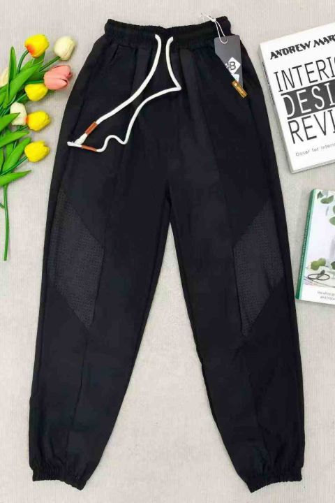 网眼拼接款微弹力冰丝束脚运动休闲裤,男女同款,258...