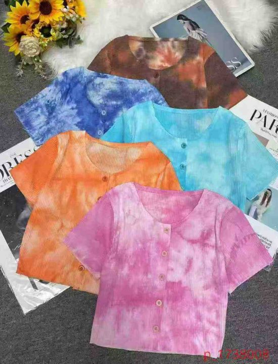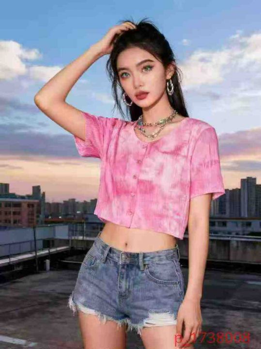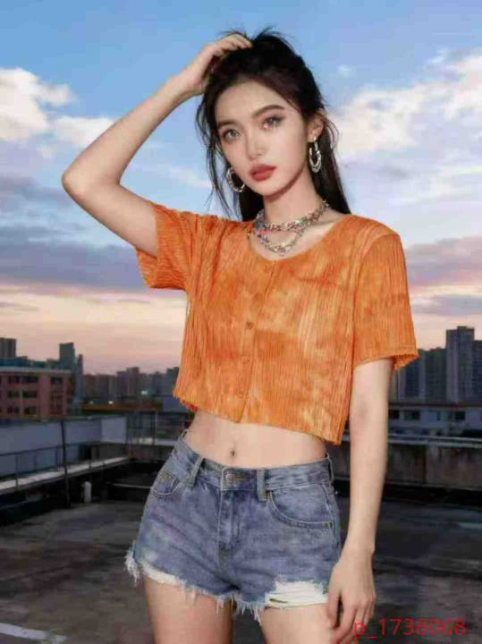 夏季新款弹力修身显瘦甜辣妹扎染针织短袖开衫,独立包装,均码面料柔软舒适弹力大,640件,全清5.9元超低价秒杀!分货加一! _@_@
