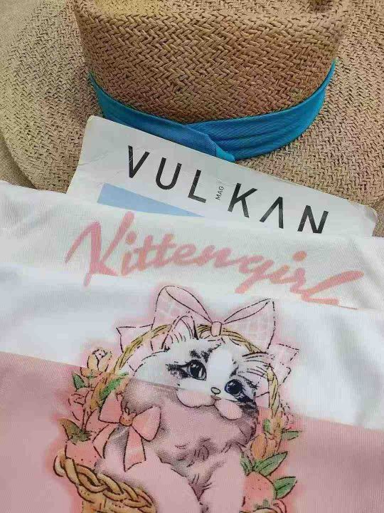 [月亮]:6.9清1900件[月亮]:不规则猫咪印花辣妹短袖T...