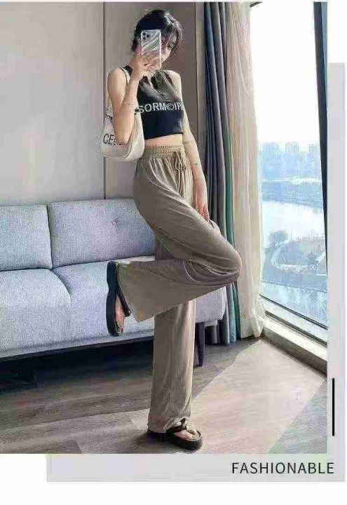 641松紧抽绳冰丝阔腿裤。面料柔软舒适,垂感顺滑。两...