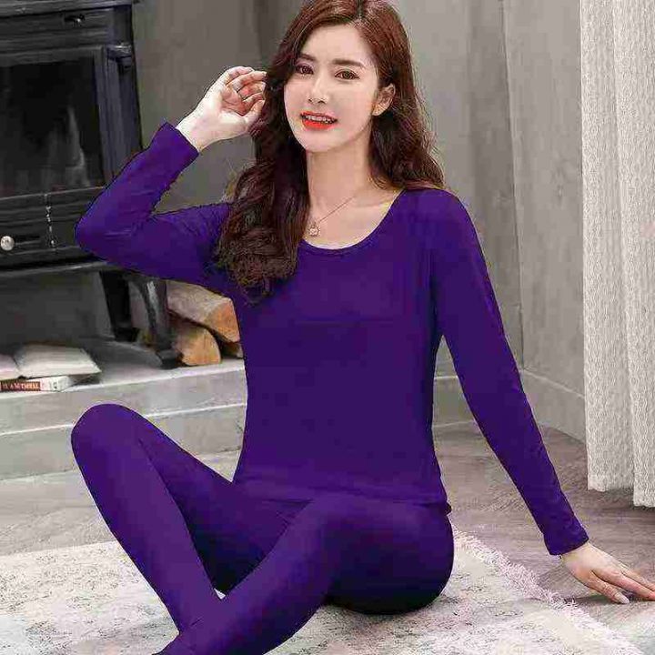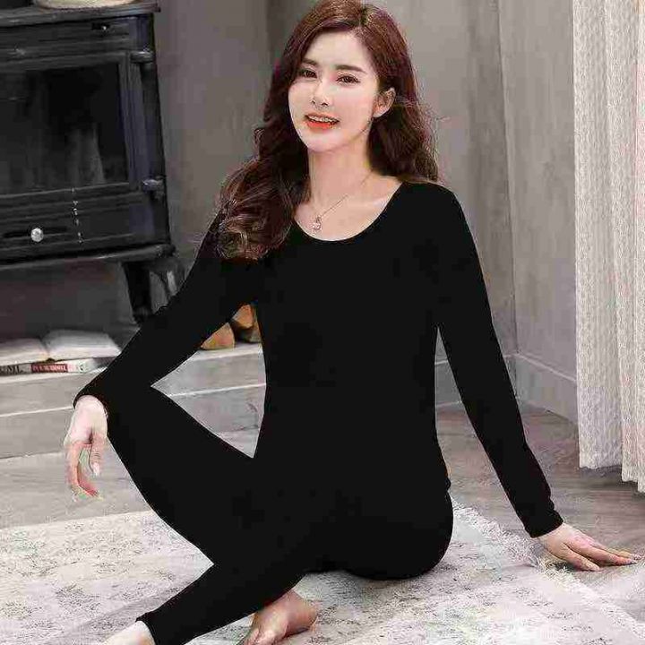 新款德绒保暖内衣女无痕圆领修身打底衫秋衣秋裤套装,...