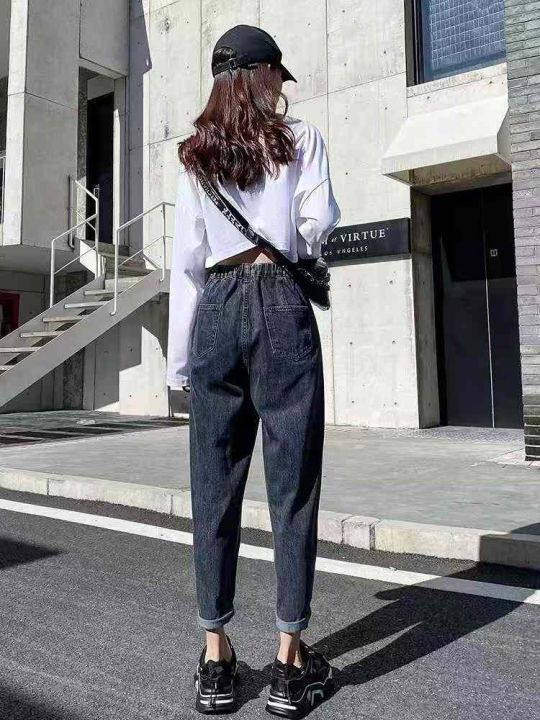 秋季新品洗水棉网红爆款复古蓝哈伦牛仔老爹裤,独立包...