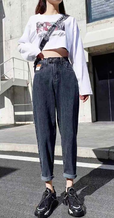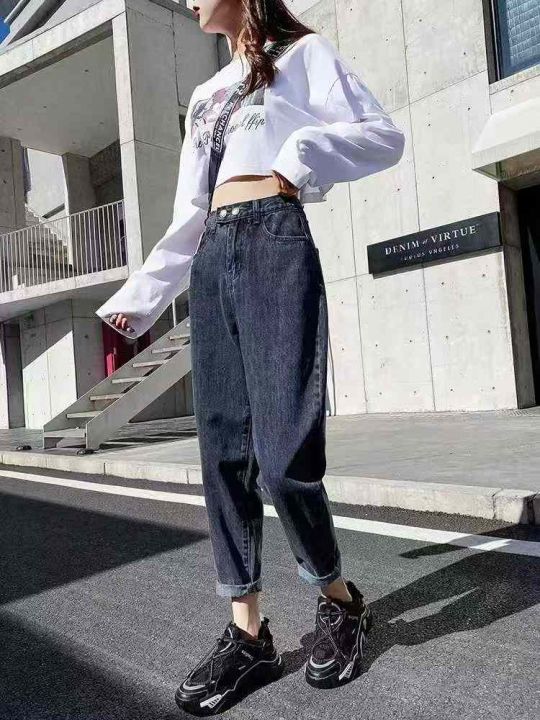 秋季新品洗水棉网红爆款复古蓝哈伦牛仔老爹裤,独立包...
