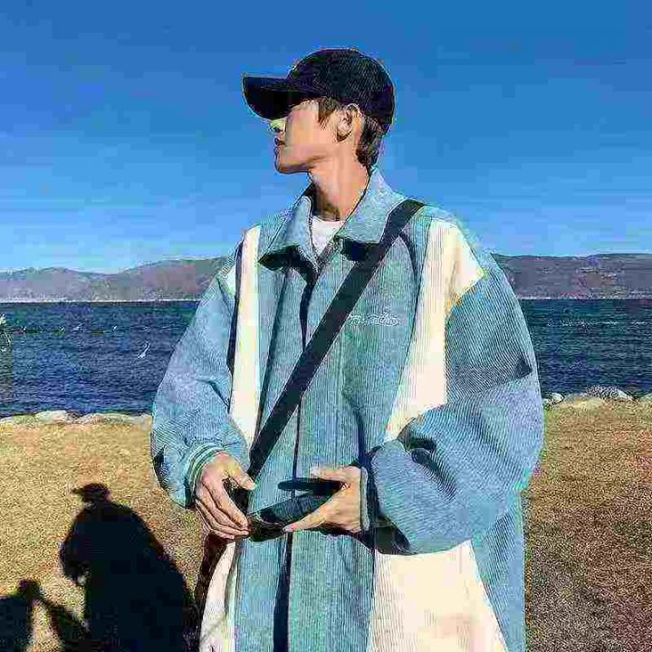 灯芯绒外套男春秋季美式vintage潮牌复古宽松拼接撞色...