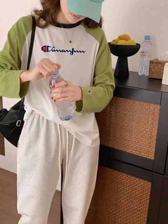美式潮牌冠军卫衣320件全清9.9元,单款4个色,独立包装,今年流行慵懒风字母拼接撞色插肩卫衣韩版上衣女春秋不加绒卫衣