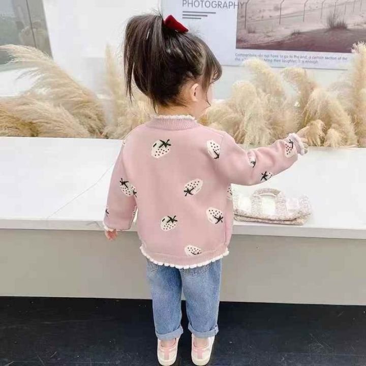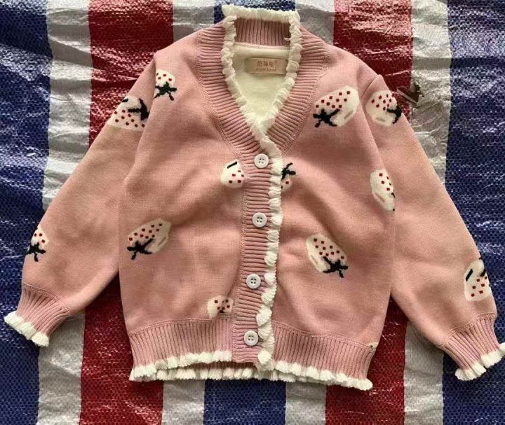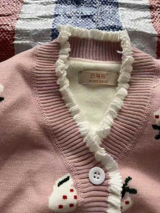 嗯咪熊女童草莓提花针织开衫单色,80-130码,1000多件...