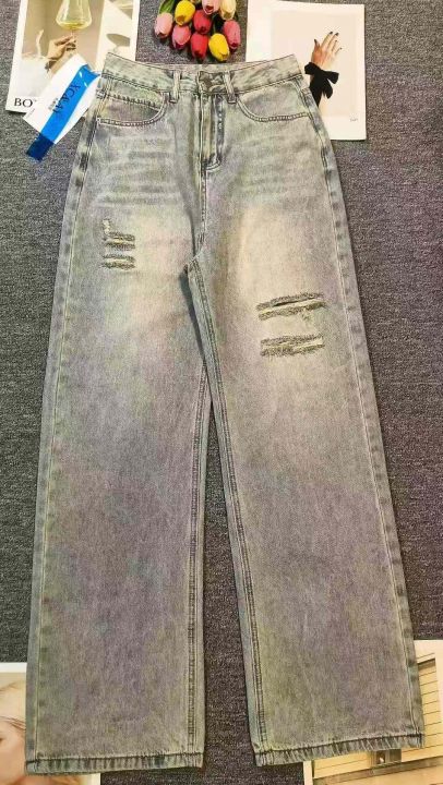 上新全清:18.8一件复古黄泥做旧破洞设计宽松百搭潮牌牛仔裤,[爱心]30件左...