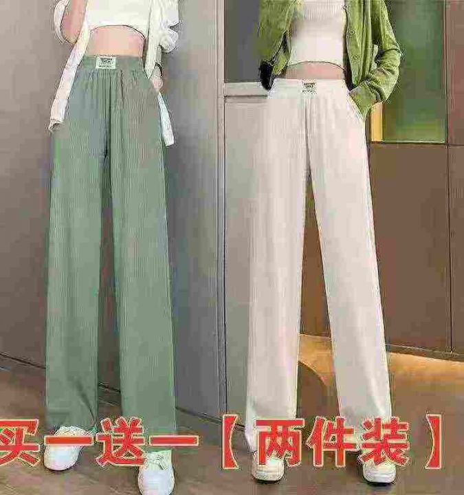 窄版冰丝裤子女夏季新款高腰垂感宽松显高显瘦休闲直筒拖地阔腿裤