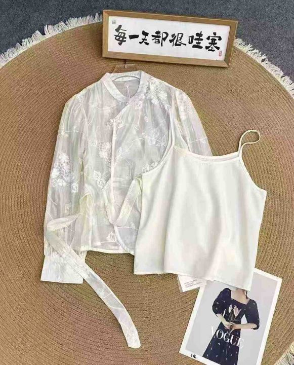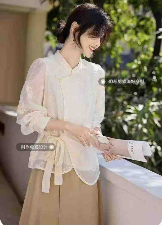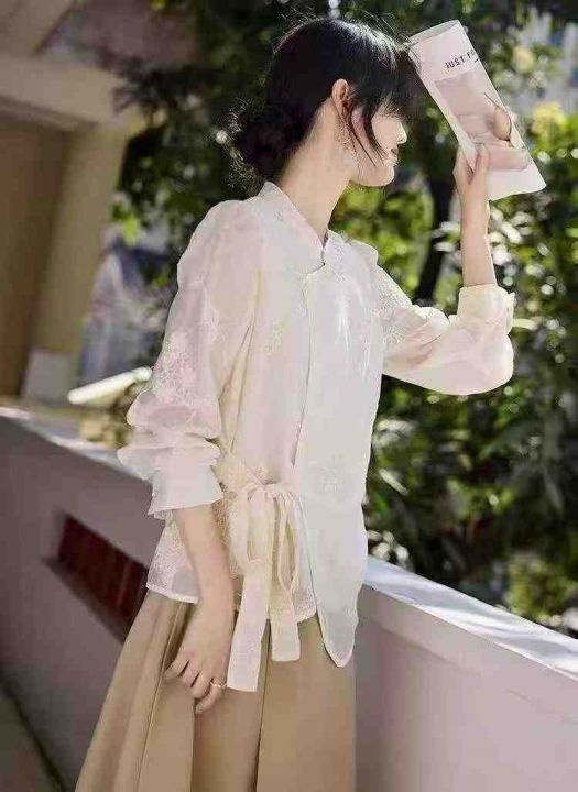 新中式两件套衬衫129件14.8 系带收腰,提花面料,国风...