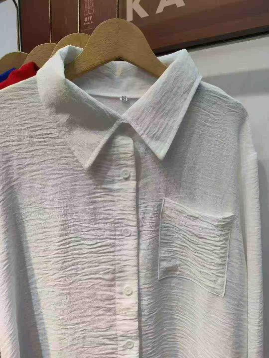 198件春夏季女装肌理感宽松大版翻领休闲衬衫上衣开衫防晒,单款四色,码数S-XXL码 独立包装。